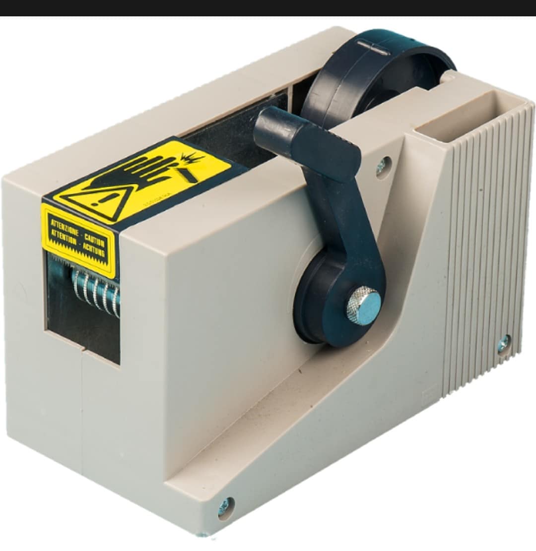 דיספנסר שולחני מקצועי עם ידית, מדגם SL1, מיועד לחיתוך מדויק ונוח של דבקי קפטון, סרטים מבודדים ודבקים תעשייתיים ברוחב עד 25 מ"מ.